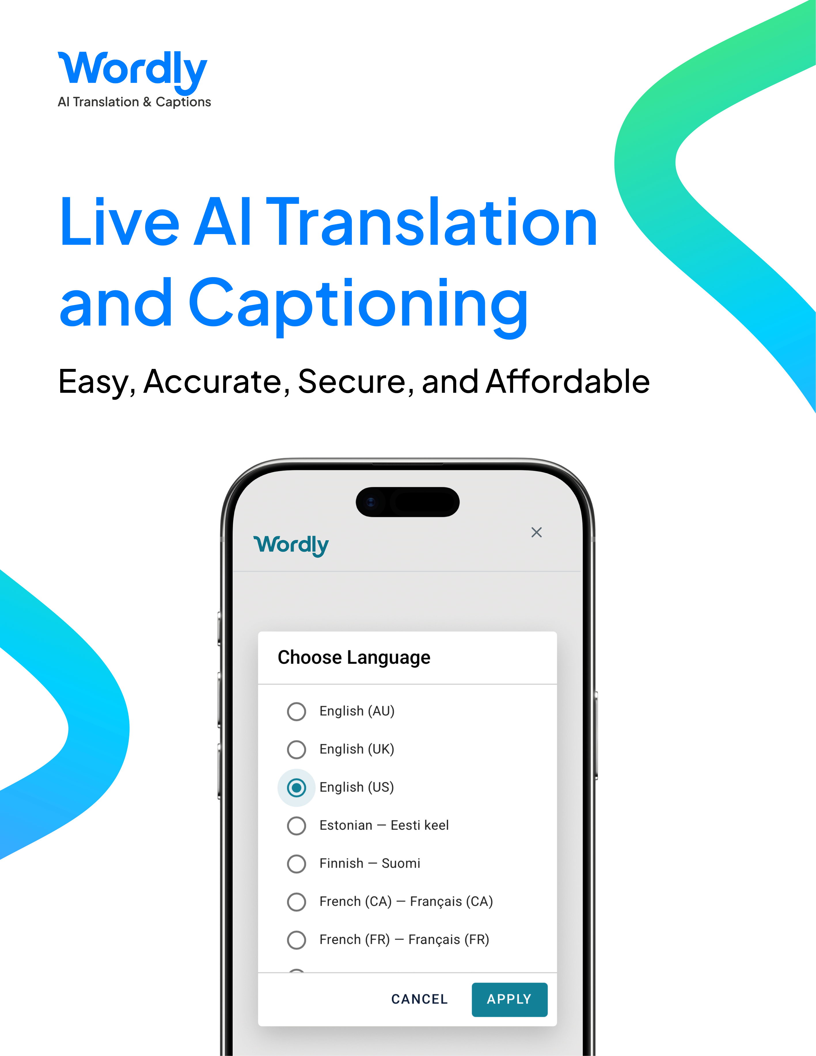 Wordly offers a range of features enabling you to deliver live translation for all of your events.